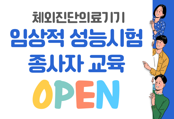 체외진단 의료기기 임상적성능시험 종사자 및 관련자 대상 VOD/온라인 교육 관련문의:범부처통합헬스케어협회(02-6295-9494)